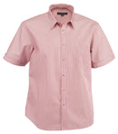 - Ladies styles feature curved hem with mock cuffs on short sleeve
