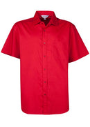 The Mens standard fit shirt has a back yoke with side comfort pleats and a rounded pocket.