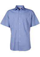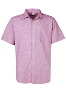 This mini-check shirt has top stitch pleated placket cut on the bias for added effect. A standard fit shirt with back yoke, side comfort pleats and pocket.