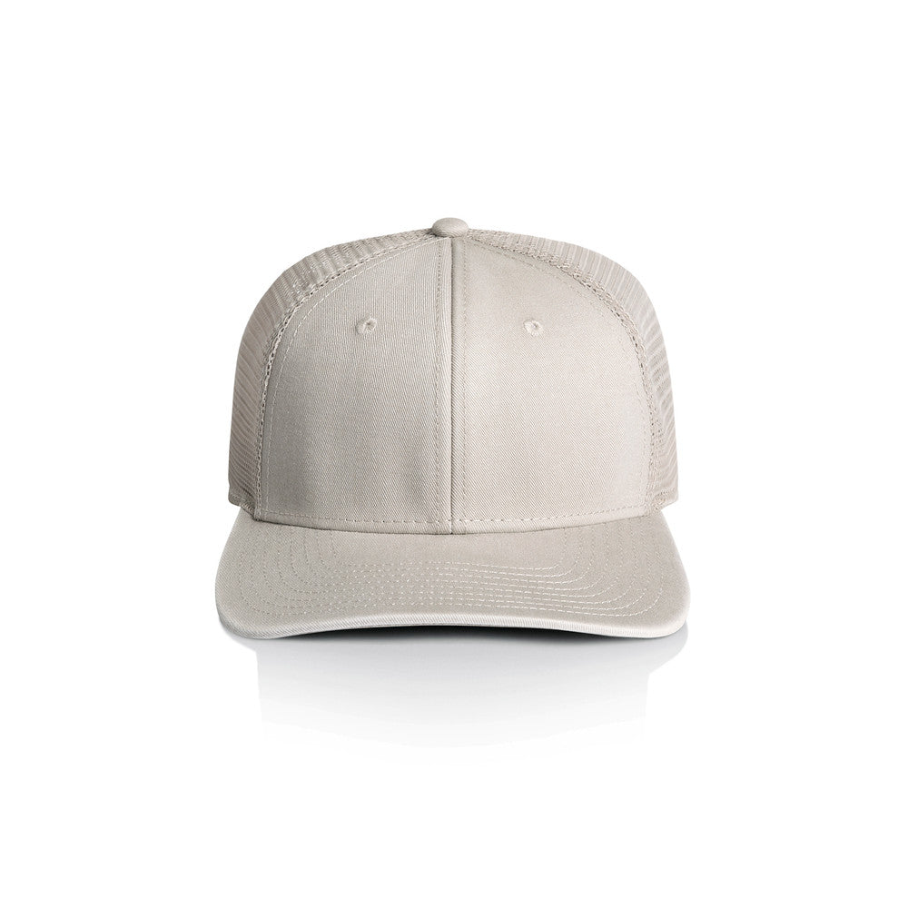 Mid weight, 100% cotton front and peak, 100% polyester mesh back